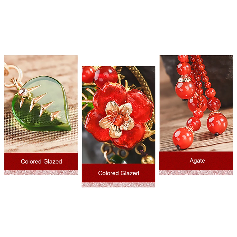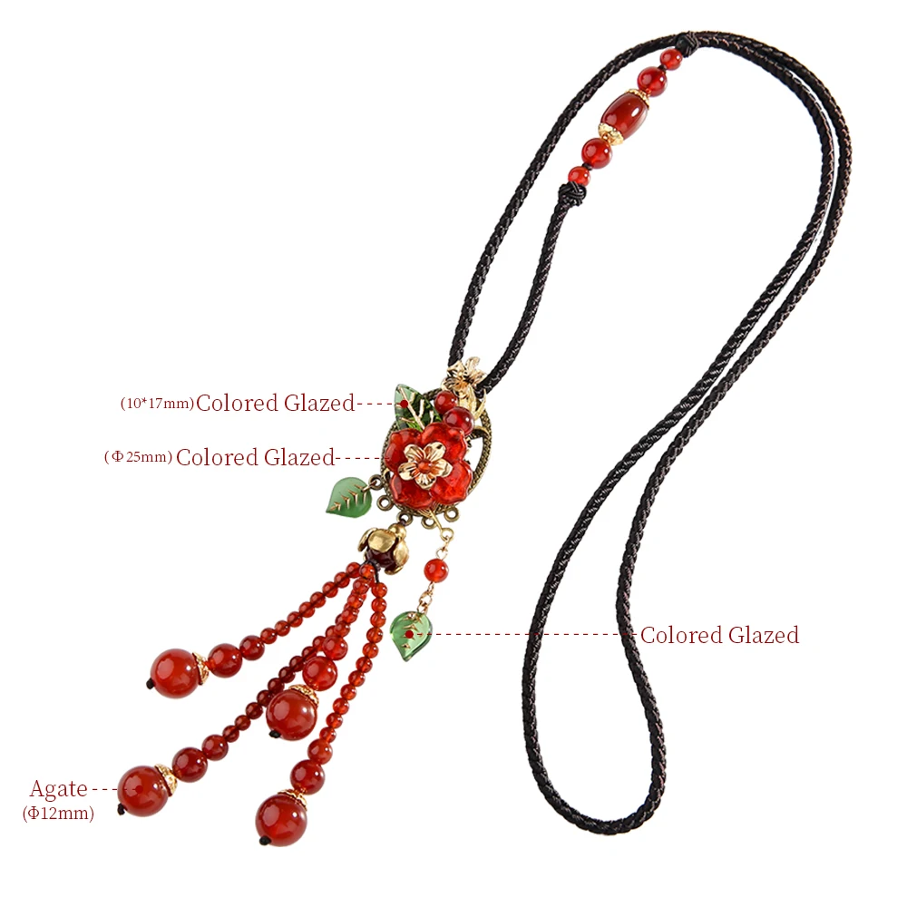 Ethnic Handmade Red Lampwork Flower Beads Chain Tassel Pendant Necklace for Women Jewelry Pendant T