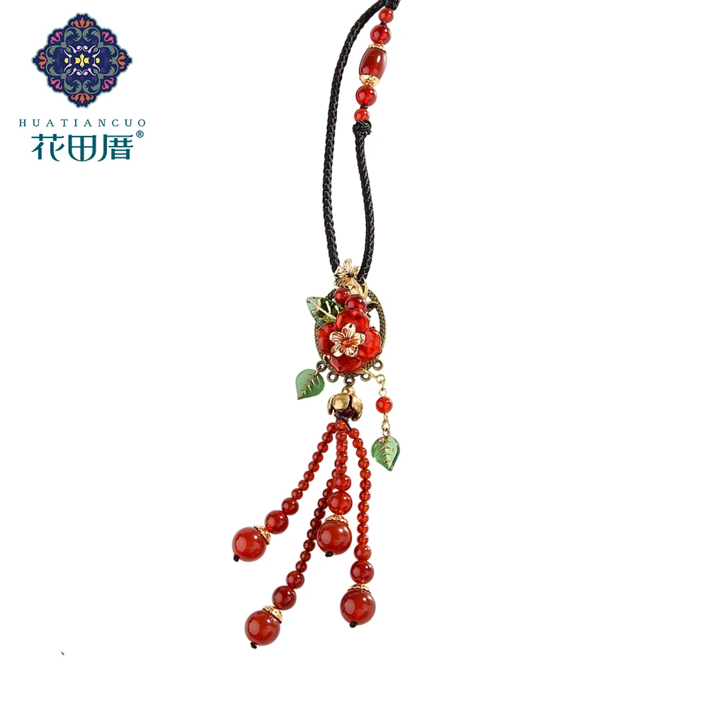 BEST QUALITY Ethnic Handmade Red Lampwork Flower Beads Chain Tassel Pendant Necklace for Women Jewelry Pendant T