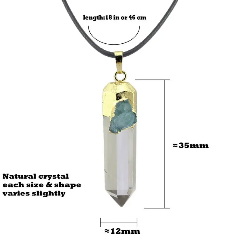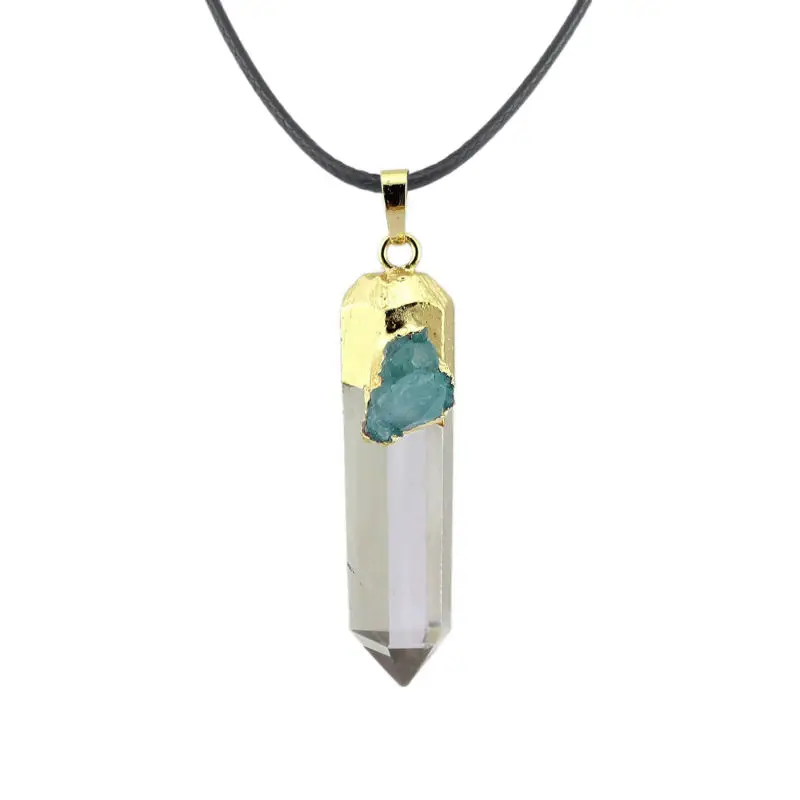 Irregular natural Crystal column Hexagonal necklace 18kgole-plate blue crystal vug pendant Women be