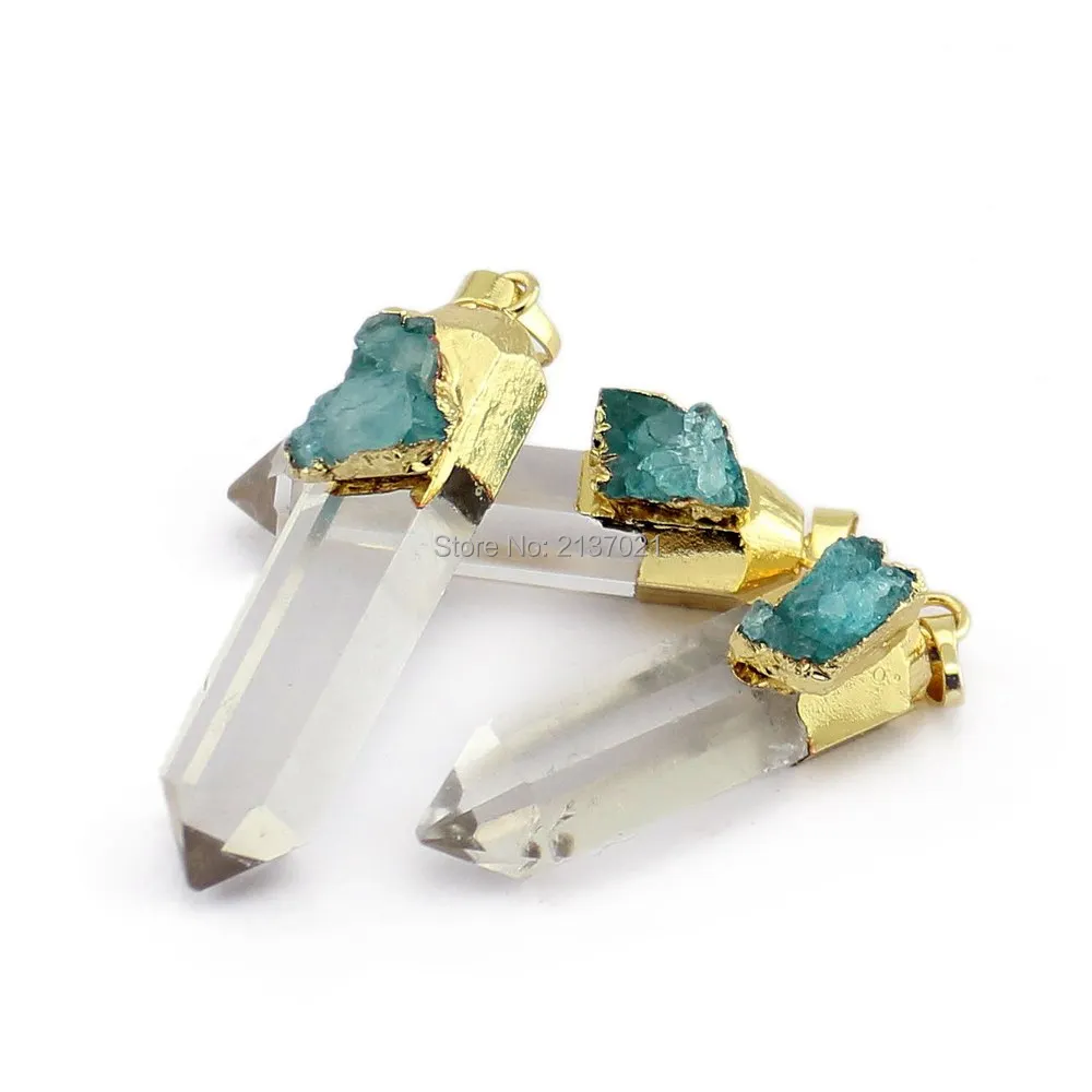 BEST QUALITY Irregular natural Crystal column Hexagonal necklace 18kgole-plate blue crystal vug pendant Women be