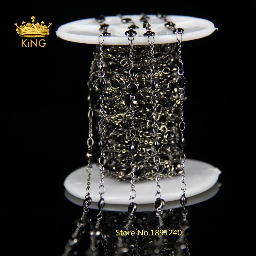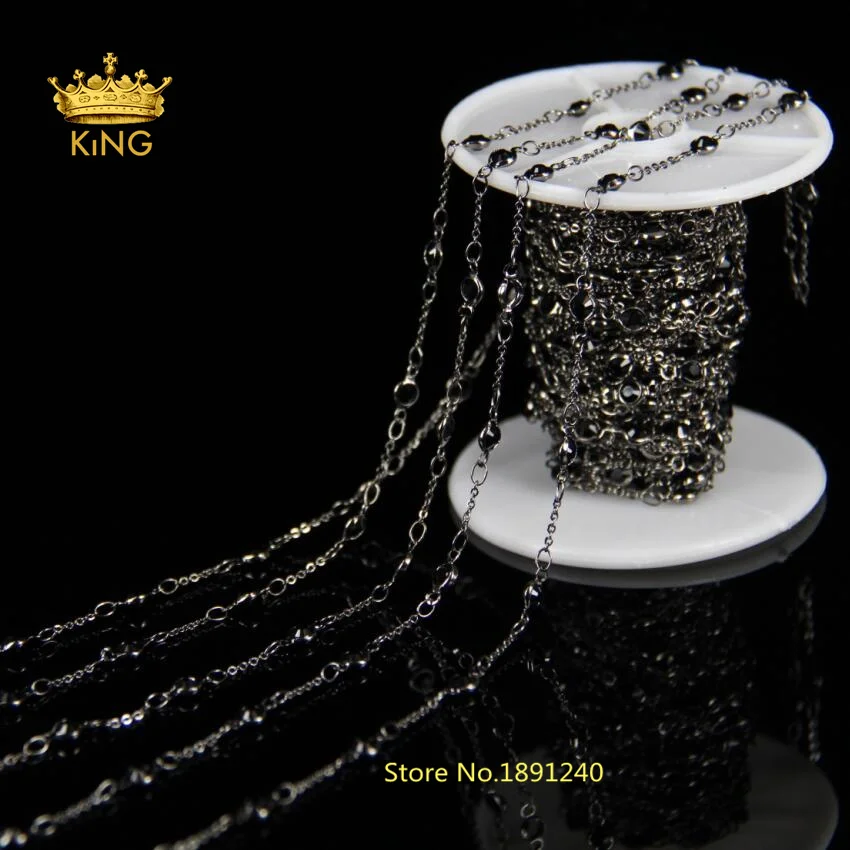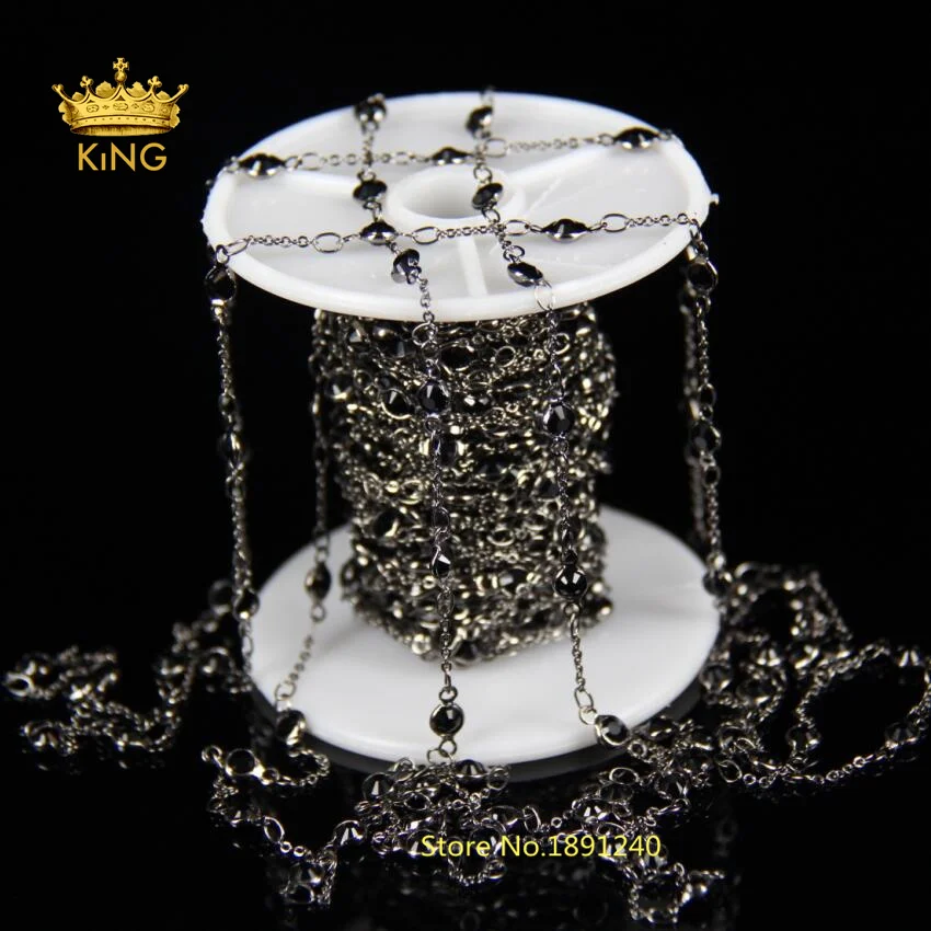 HOT SALE Fashion 5Meter Gun Black Plated Beaded Wire Wrapped Rosary ChainsNatural Black Glass Round Beads Ro