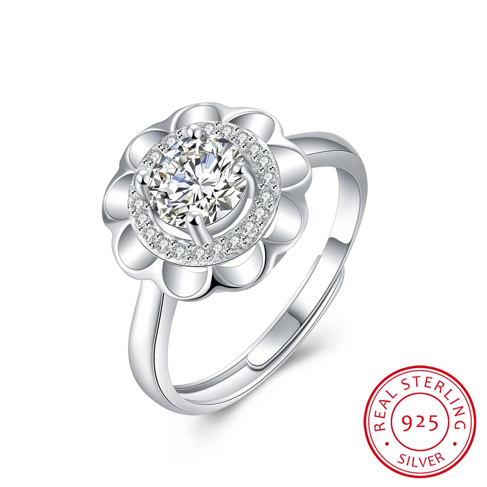 BEST QUALITY UFOORO New 925 Sterling Silver Daisy Flower Rings for Women Adjustable Size Rings Fashion Wedding J