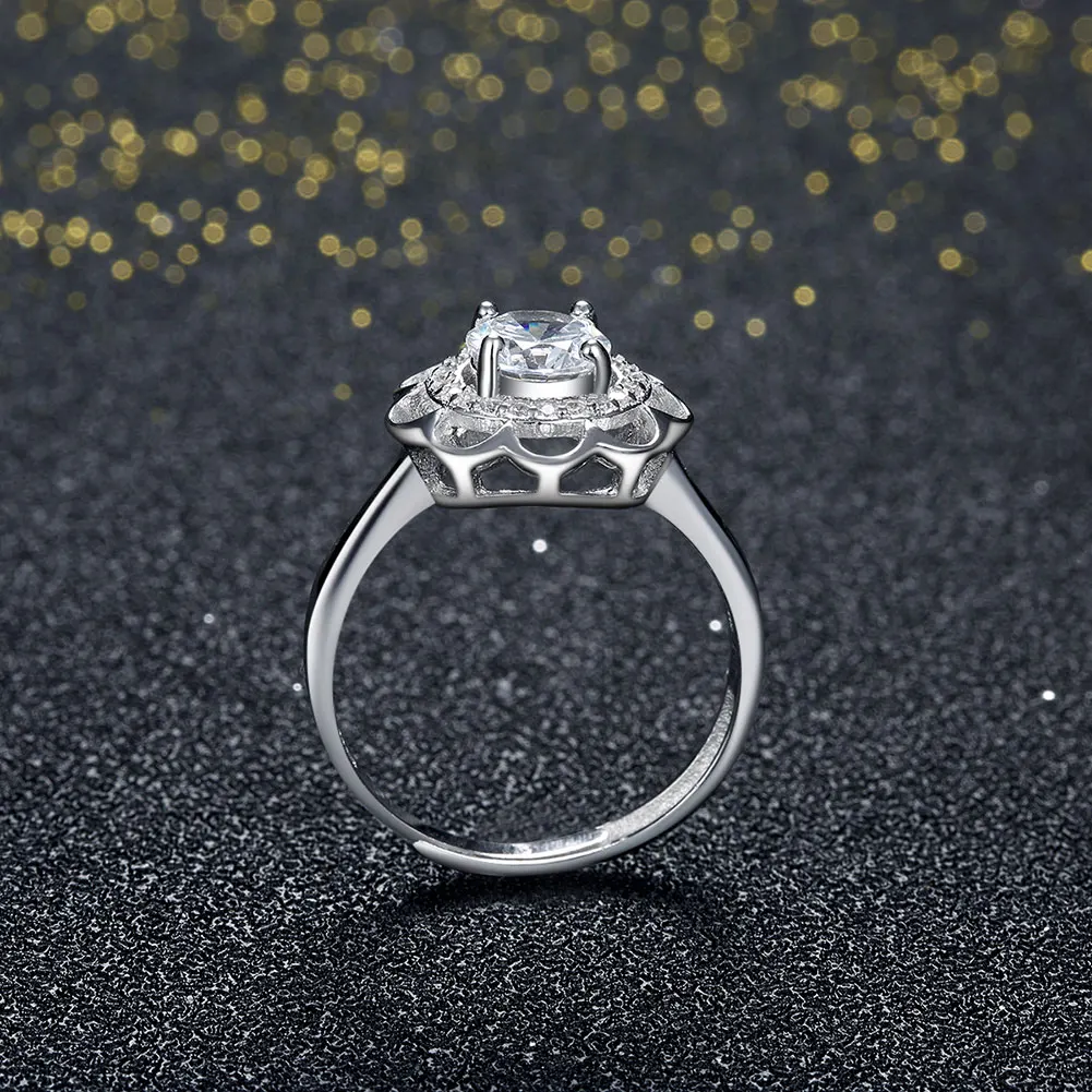 UFOORO New 925 Sterling Silver Daisy Flower Rings for Women Adjustable Size Rings Fashion Wedding J