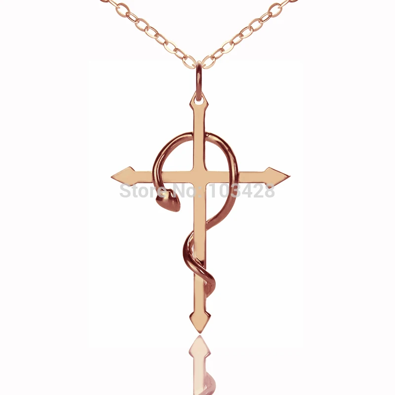 HIGH QUALITY AILIN Religious Cross Necklace Rose Gold Color Snake Cross Charms Life is Immortal Snake Jewelry