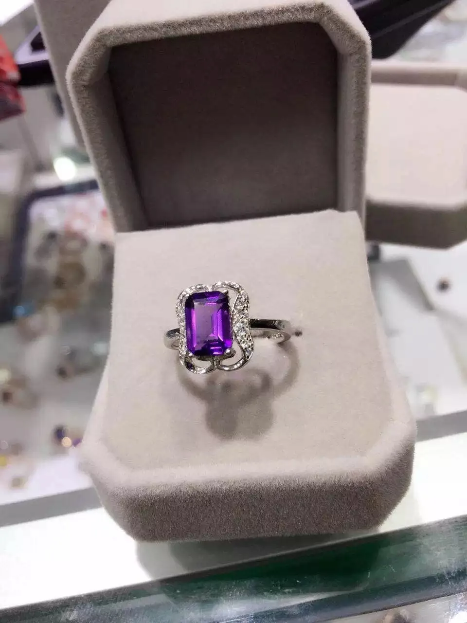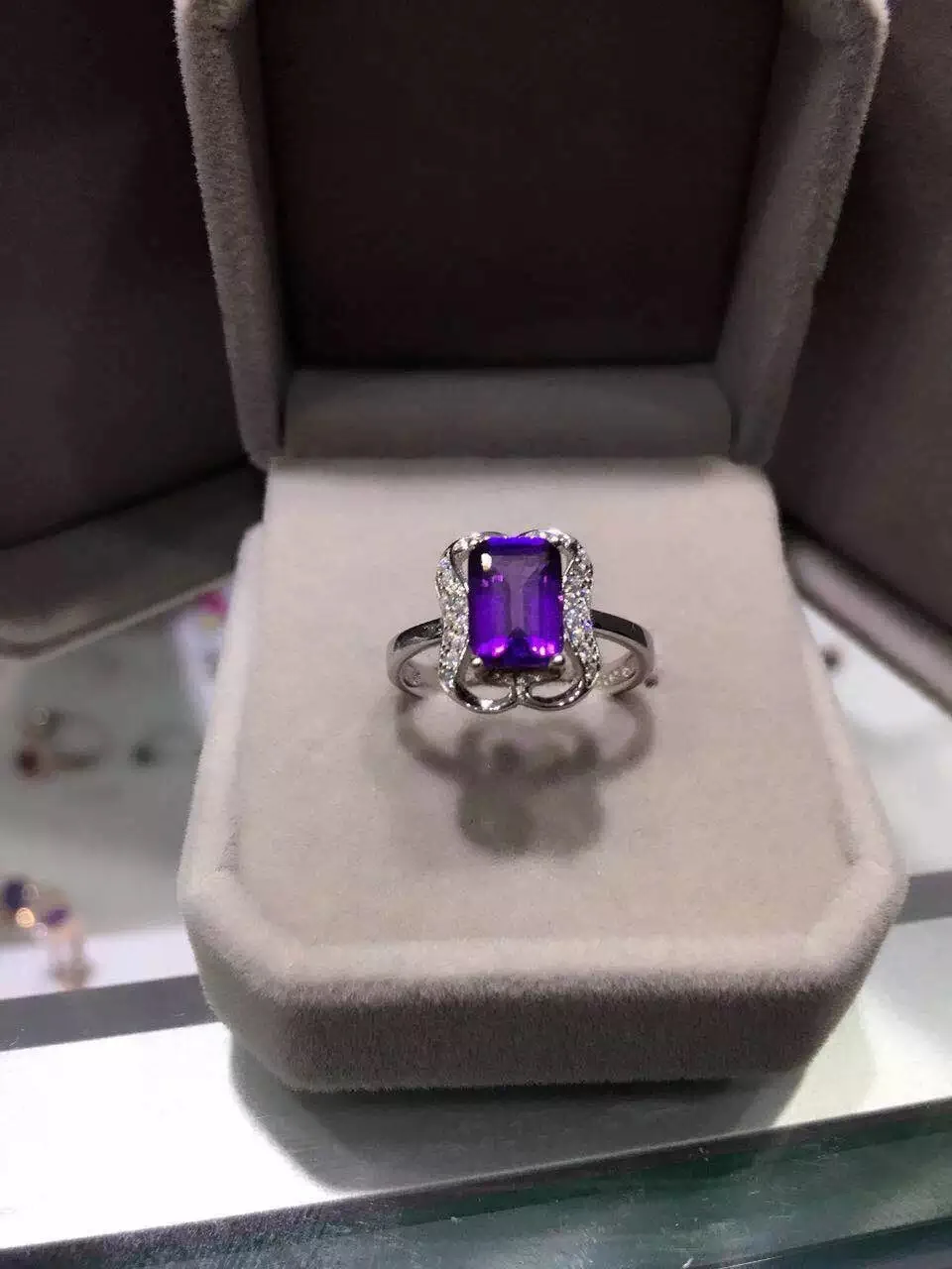 HIGH QUALITY Square Natual Purple Amethyst Stone Ring Women Real Gem Stone Ring 100% Solid 925 Sterling Silver B