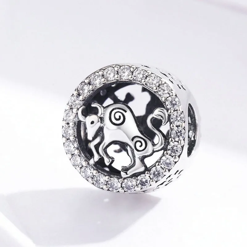 HIGH QUALITY Zodiac Constellation Taurus Round Beads for Women Jewelry Making 925 Sterling Silver Clear CZ DIY J