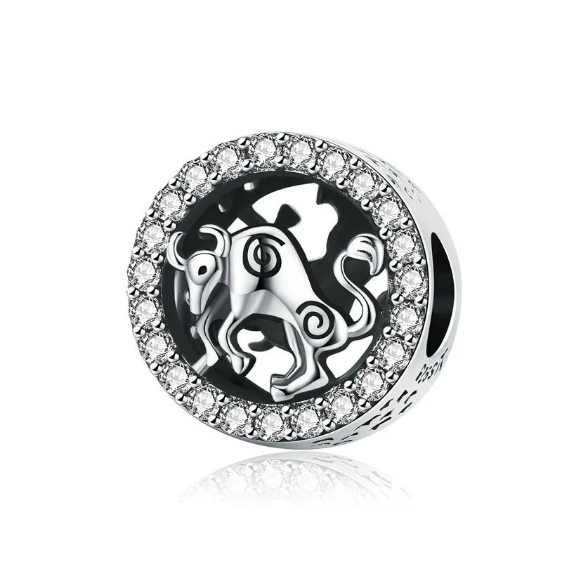 Zodiac Constellation Taurus Round Beads for Women Jewelry Making 925 Sterling Silver Clear CZ DIY J