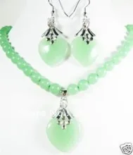 fine Lovely Wonderful green gem Heart-shaped Pendant necklace earrings fashion jewelry set gem wome