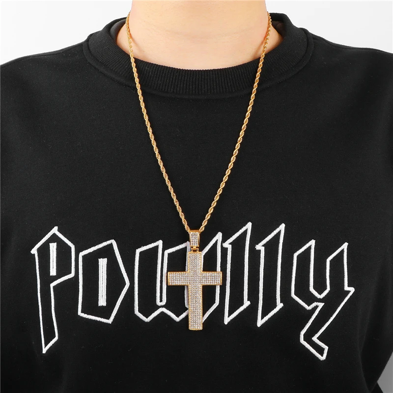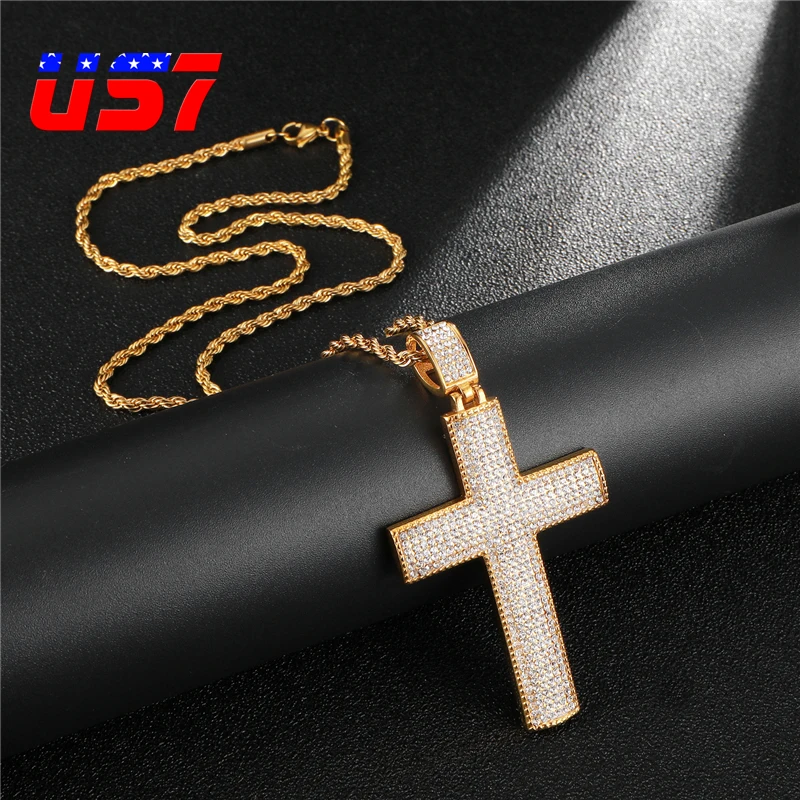 Review US7 HIP Hop Cross Pendant Iced Out Rhinestone Crucifix Pendants & Necklaces 316L Stainless Steel Ne