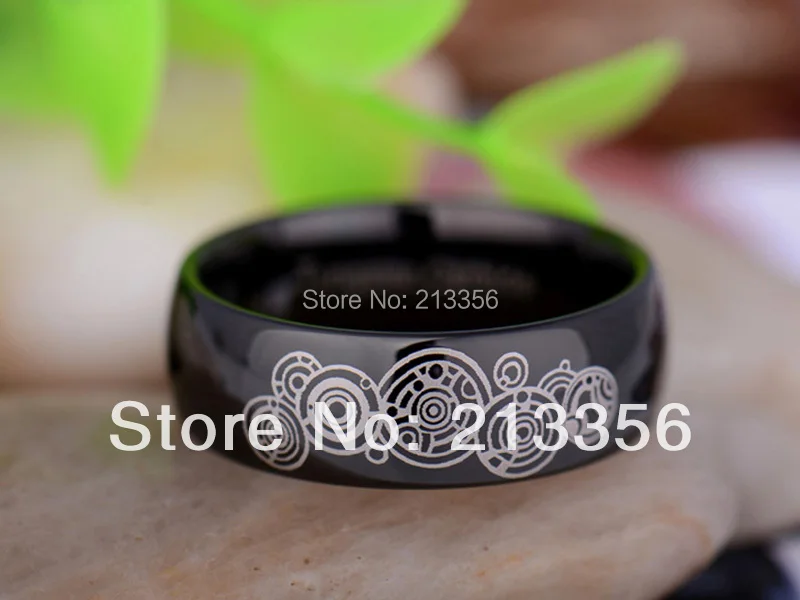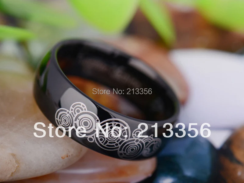 2015 New Arriving Rings:8MM Black Doctor Who Tungsten Wedding Ring(Free Shipping/Free Engraving Jew