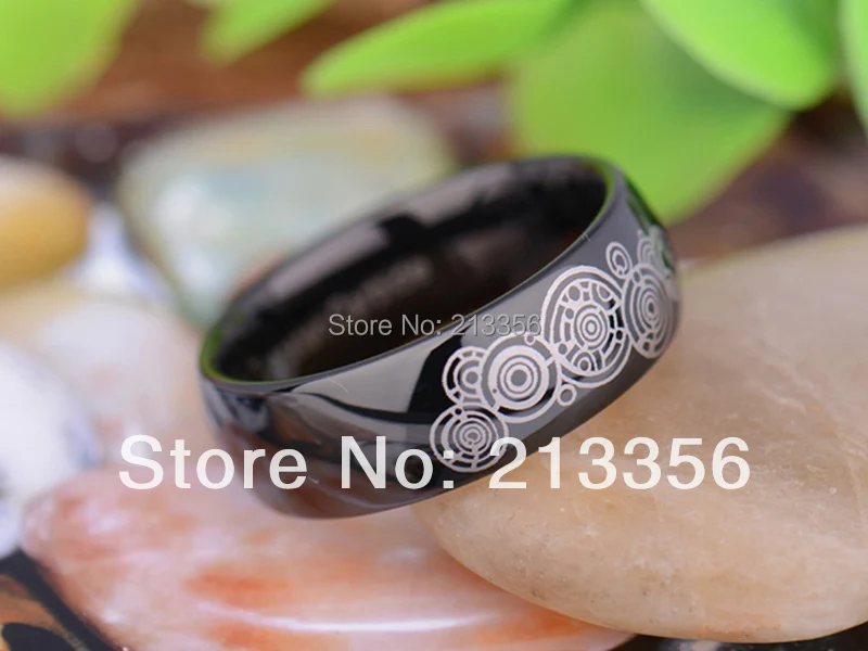 BEST QUALITY 2015 New Arriving Rings:8MM Black Doctor Who Tungsten Wedding Ring(Free Shipping/Free Engraving Jew