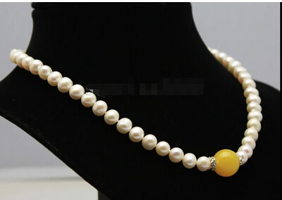 ORIGINAL New 7-8mm white freshwater pearl +14mm yellow red green stone necklace Factory Wholesale price Gift