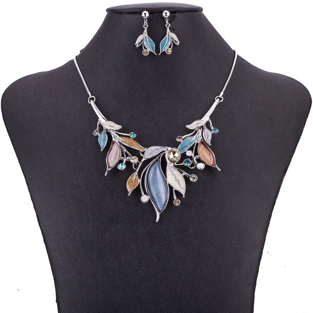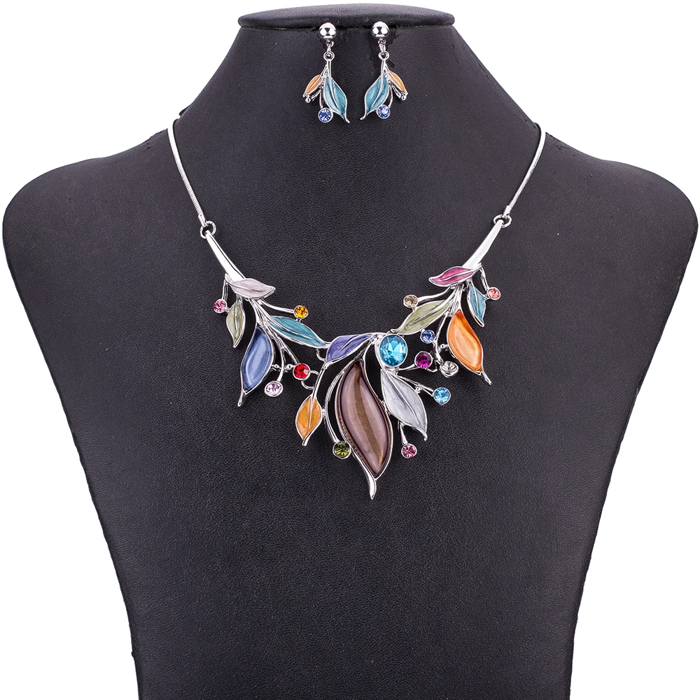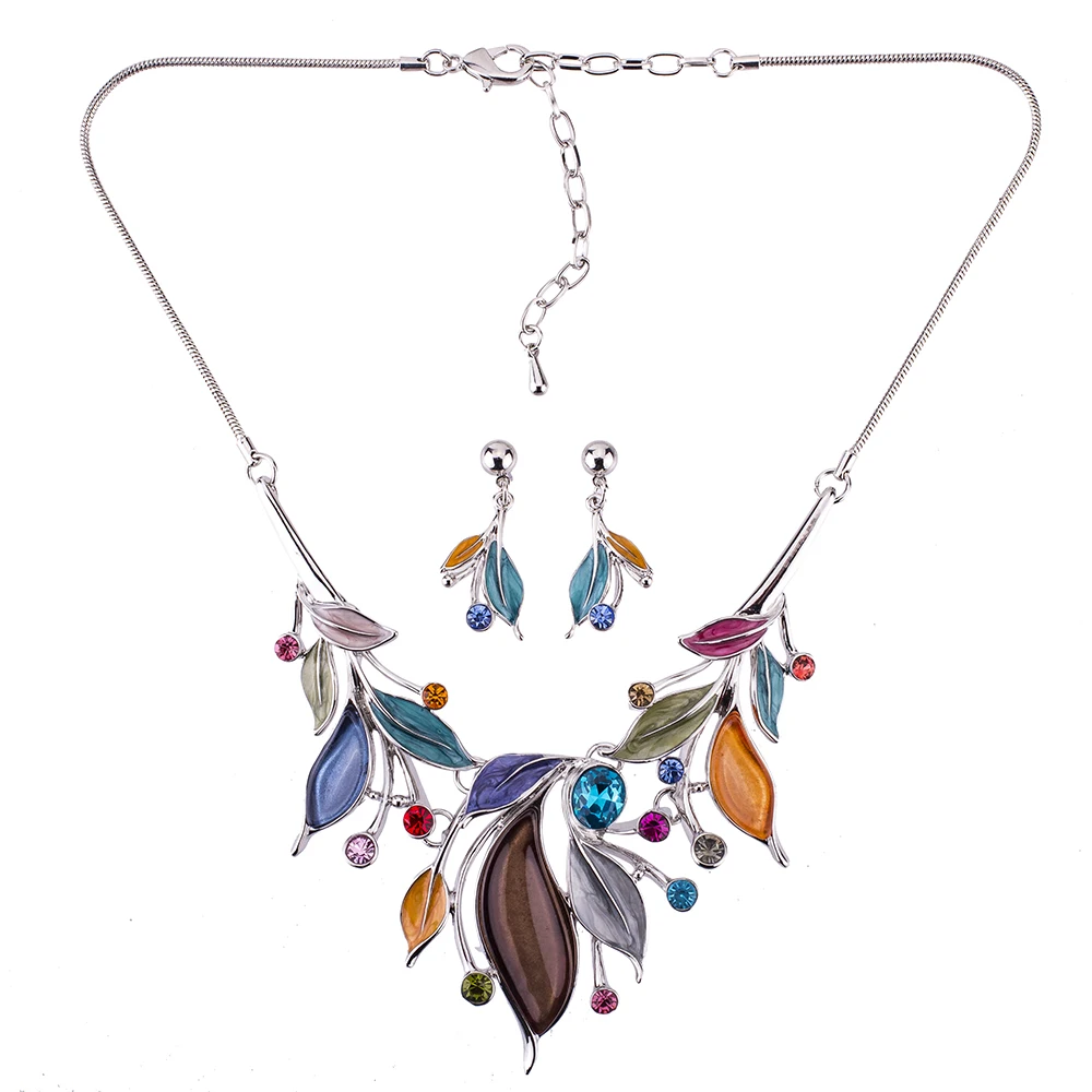 Review MS1505085 Fashion Jewelry Sets Leaf Design Multicolor Necklace High Quality Lead&Nickle Free Bridal