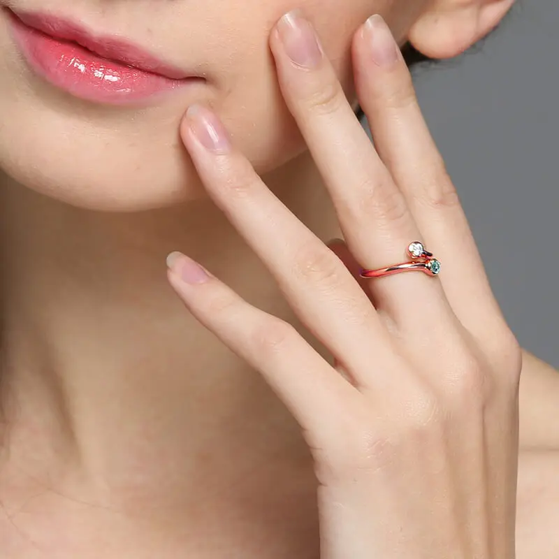 BEST QUALITY AILIN Personalized Rose Gold Color Dual Birthstone Ring Mothers ring Stackable Two birthstones ring