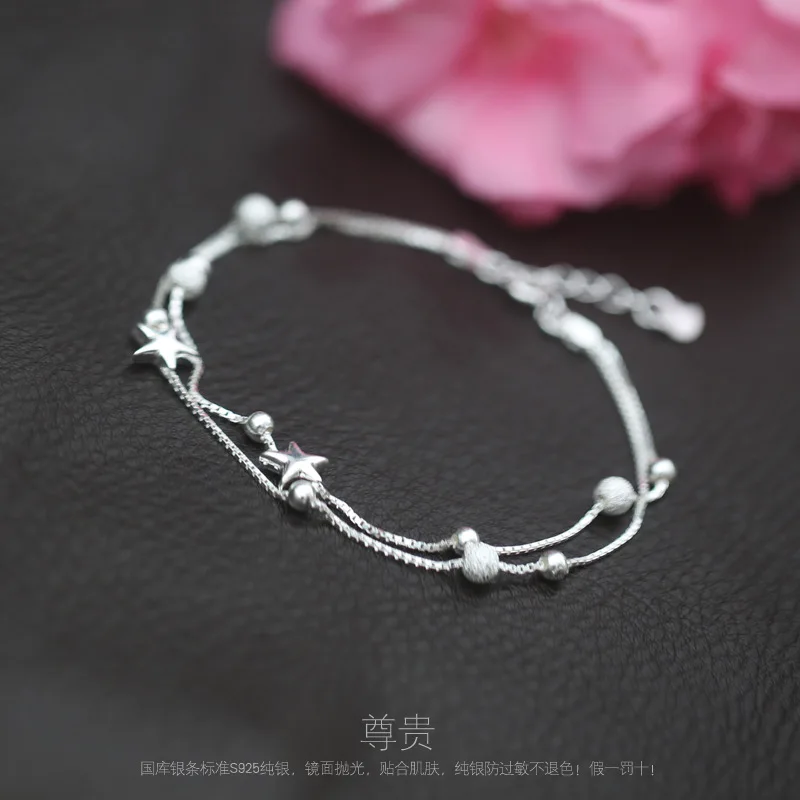 High quality 925 sterling silver bracelet female stars starfish shape bracelet women jewelry round